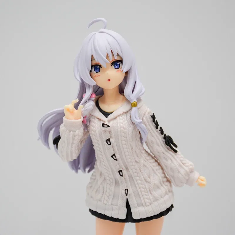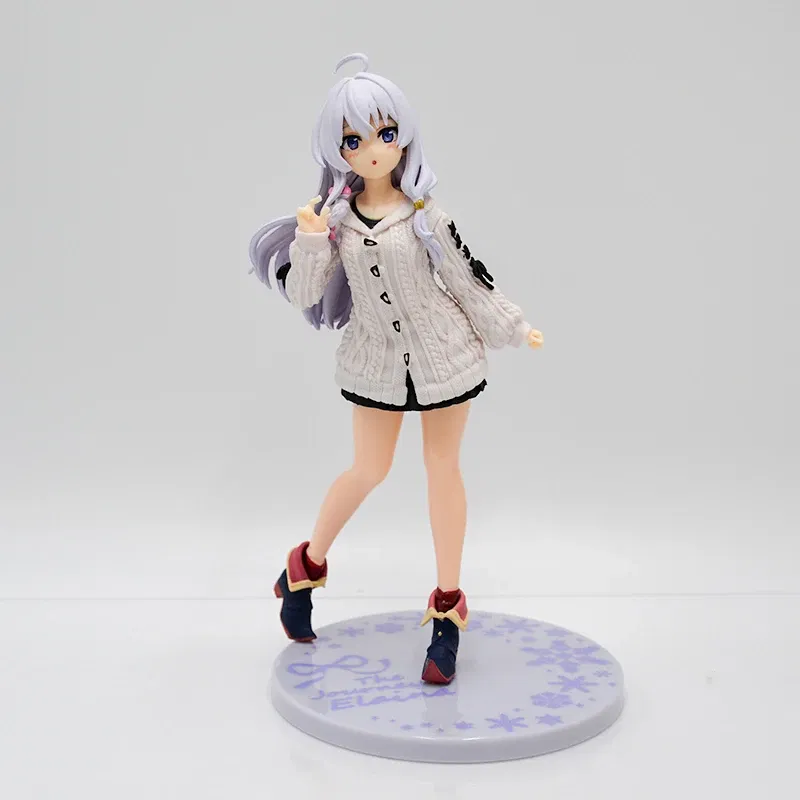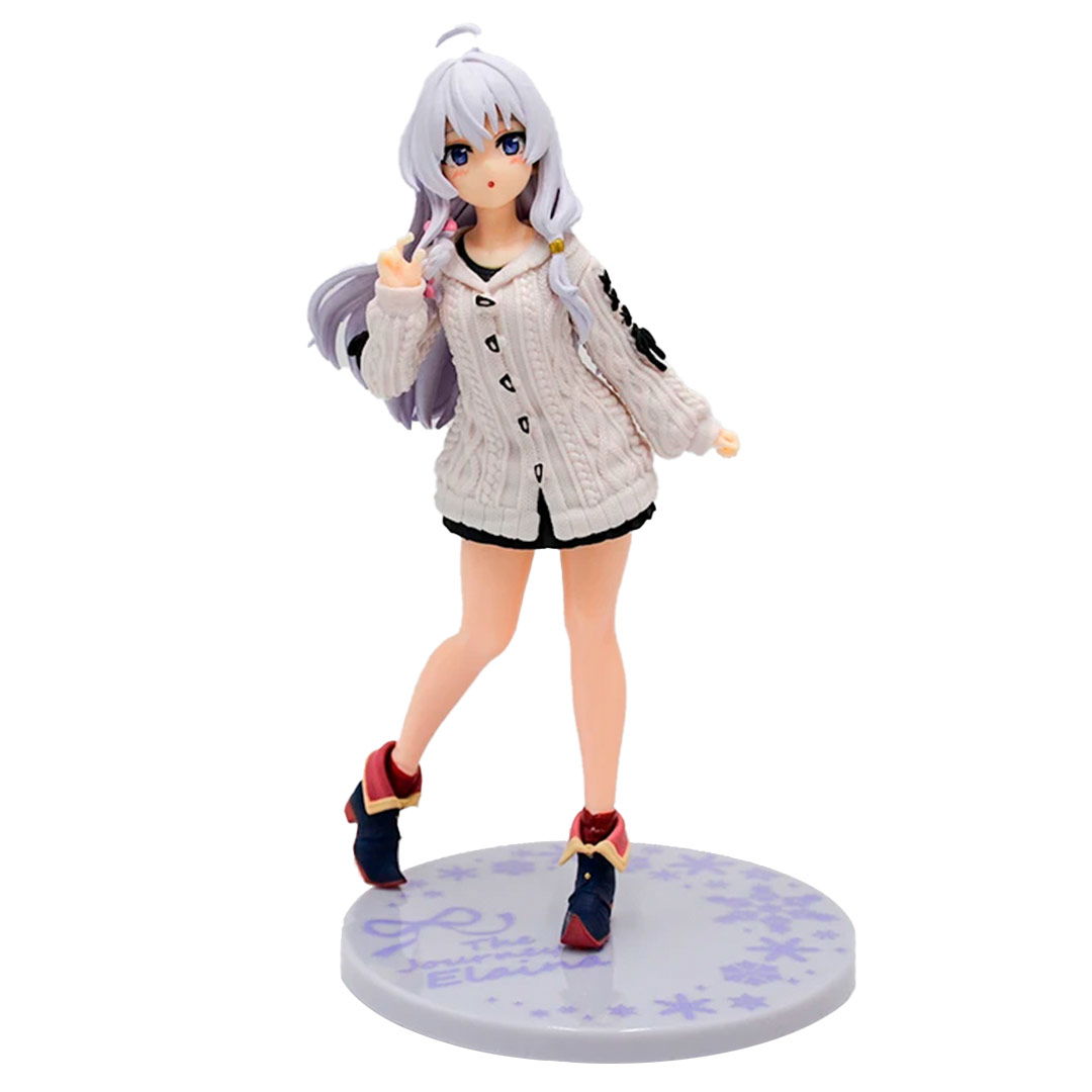 La bruja viajera más carismática del anime llega en una versión encantadora y casual. ✨ Esta figura muestra a Elaina con un look relajado: un sweater tejido oversize con detalles en relieve, falda corta y su característica cabellera plateada.