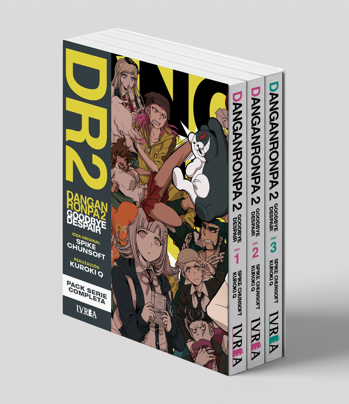 La adaptación de DANGANRONPA 2 corrió a cargo de Kuroki Q y se publicó originalmente en 2012 en las páginas de la Famitsu Comic Clear de la editorial Enterbrain, compilándose posteriormente en 3 tomos. La edición de Ivrea es idéntica a la original japonesa: Formato B6 con sobrecubierta incluyendo algunas páginas a color.