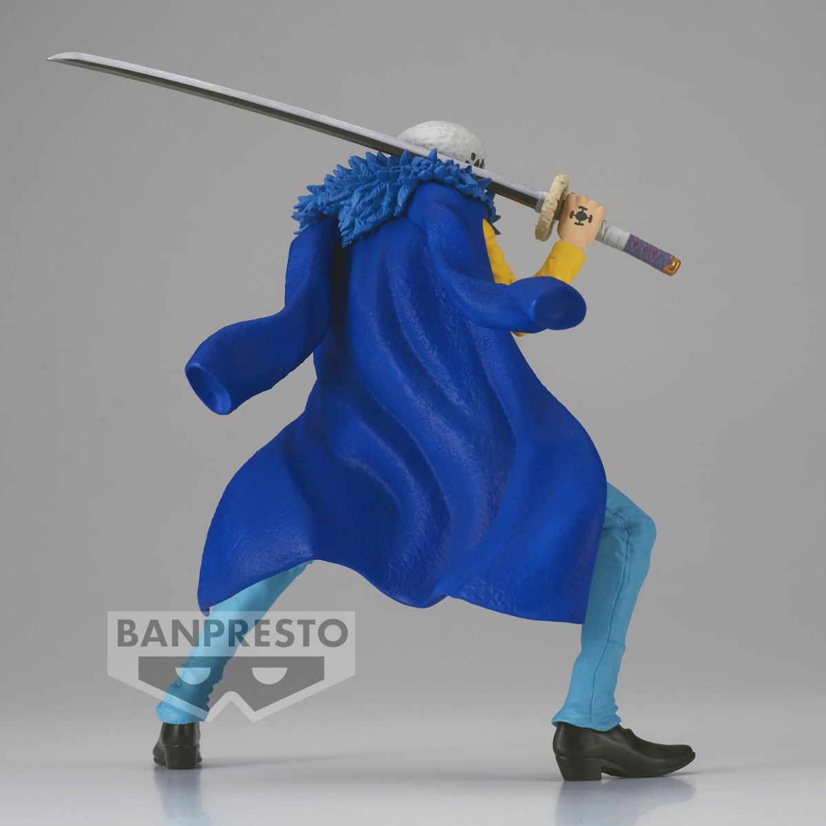 Law es representado con su emblemática vestimenta de la saga de Wano, empuñando su espada Kikoku y listo para desplegar su técnica "ROOM". El nivel de detalle en sus tatuajes, los pliegues de su ropa y su expresión de concentración absoluta hacen de esta pieza un ítem indispensable para cualquier fan de One Piece.