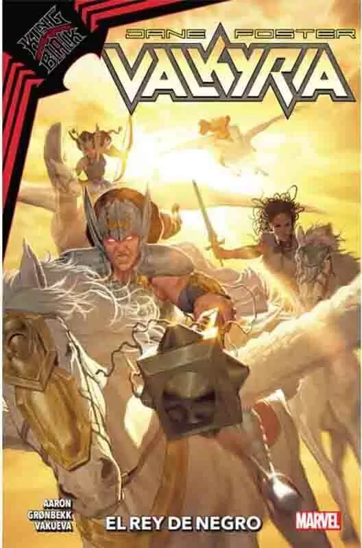 Y cuando Knull y sus horrorosos simbiontes llegan a la Tierra (y el guardián del planeta, Sentry, cae), todo lo que Jane ve cuando mira a nuestro gran planeta azul es una visión de la muerte. Para ayudar a detener al Rey de Negro, Jane debe volver a formar a las valquirias, empezando por Hildegarde, una guerrera de los salones sagrados de Asgard, y la X-Men Dani Moonstar, una antigua valquiria. ¡Pero lo que Jane no sabe es que ella nunca fue la última valquiria! ¿Quién es la cuarta guerrera?