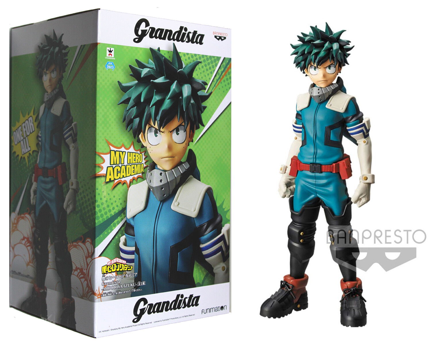 La línea Grandista de Banpresto presenta a Izuku Midoriya (Deku) en una figura de gran tamaño y nivel de detalle espectacular. Inspirada en su diseño del anime My Hero Academia, muestra al joven héroe con su clásico uniforme de héroe, en pose firme y lista para la acción.