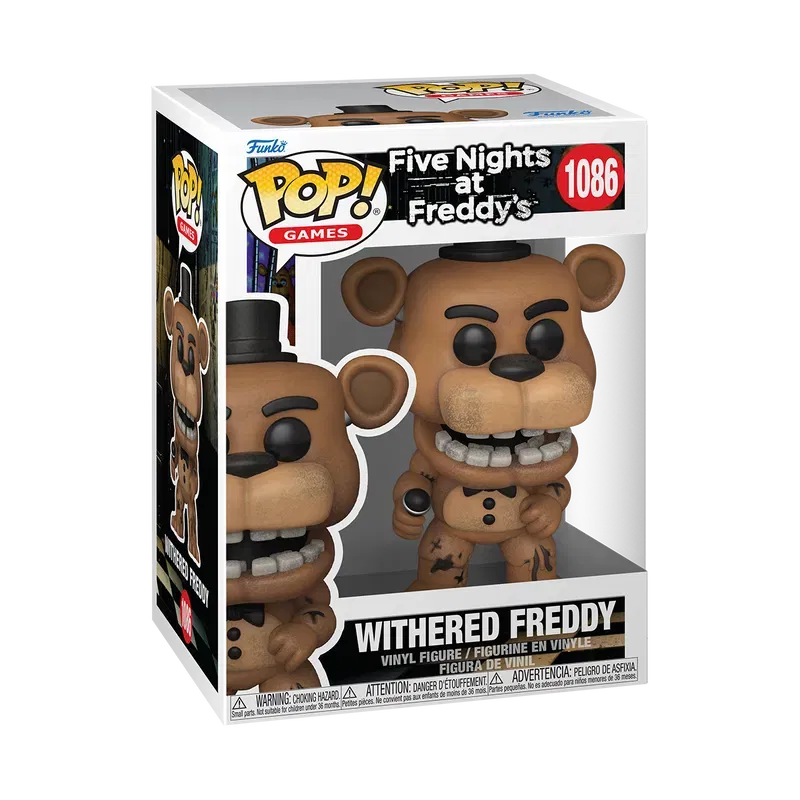 Dale un jump scare a tu colección con POP! Withered Freddy! Esta figura captura la esencia oscura y desgastada del animatrónico más famoso de la saga. Es la pieza fundamental que necesitás para tener tu lineup completo.