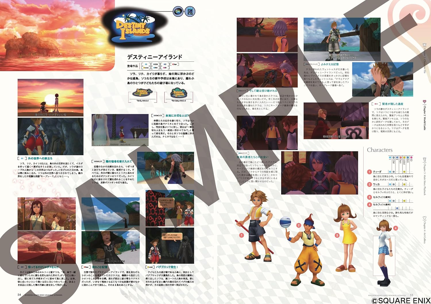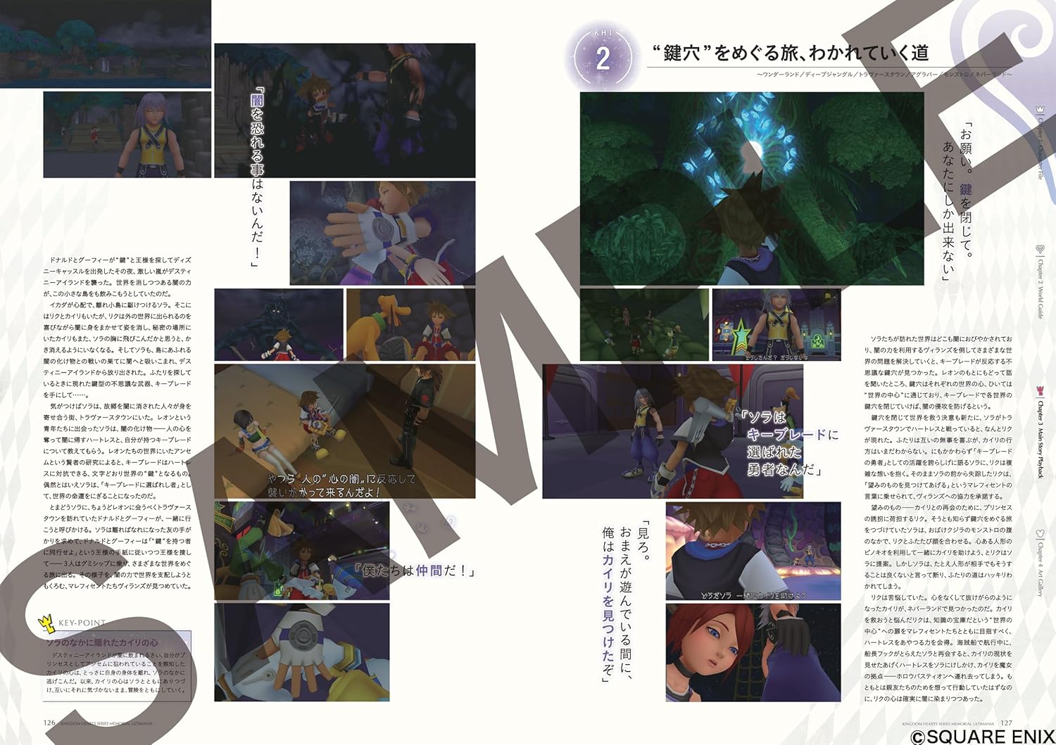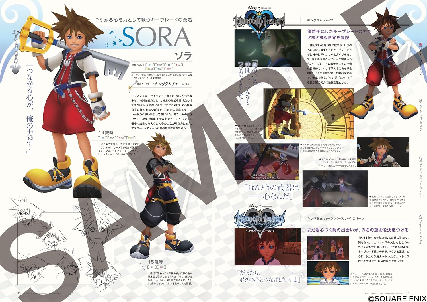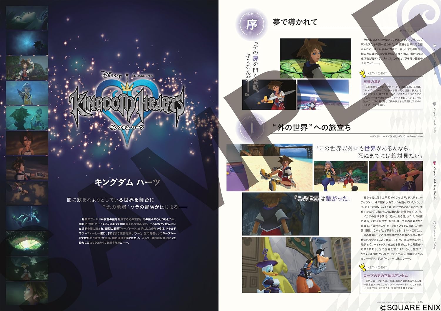 Resúmenes argumentales de todos los juegos publicados hasta ese momento (KH I, II, COM, 358/2 Days, Coded, Birth by Sleep, Dream Drop Distance y sus versiones Final Mix).