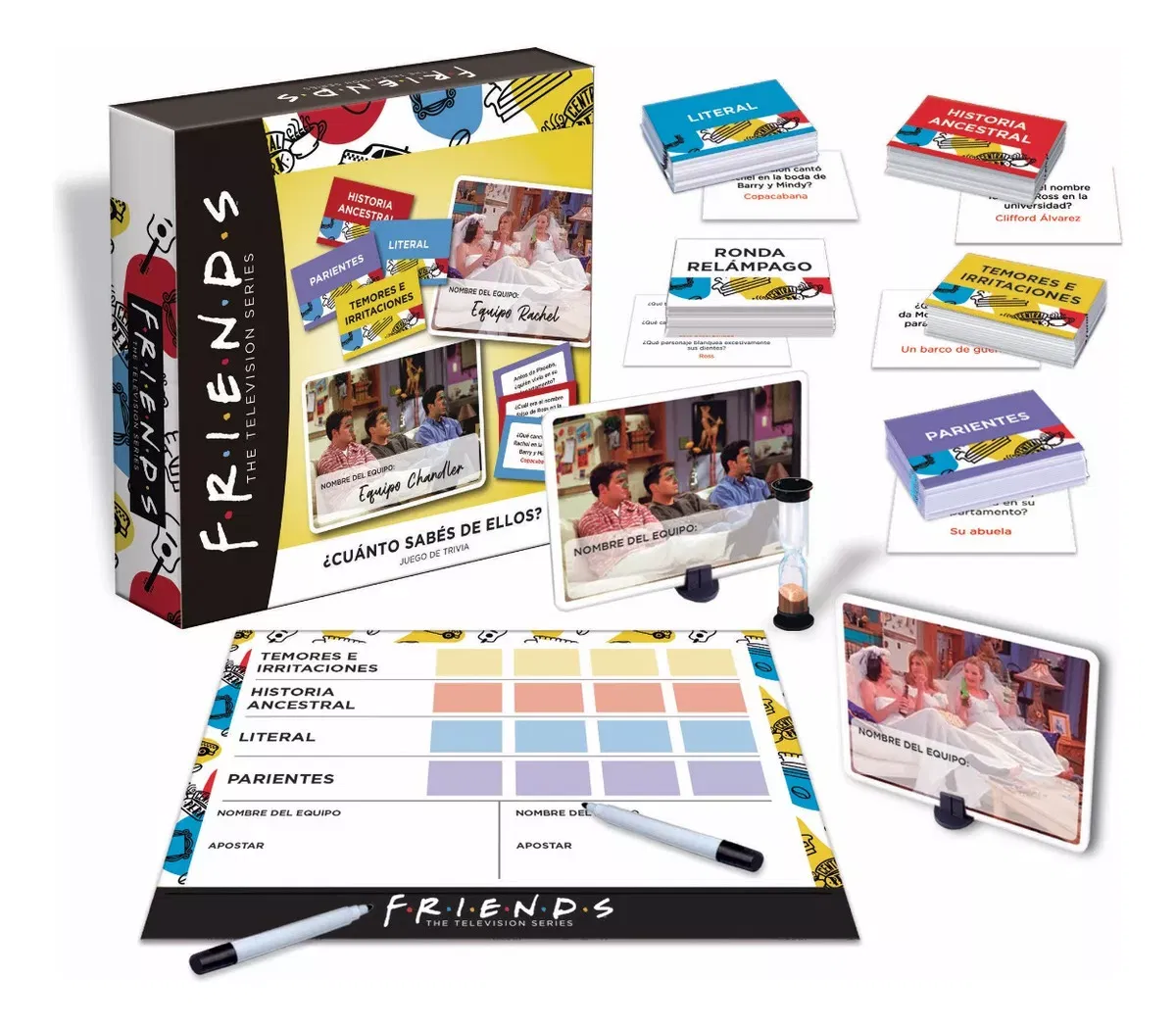 Componentes del juego: 240 cartas 2 tarjetones 1 tablero puntaje 2 soportes plasticos 2 marcadores 1 reloj de arena instrucciones