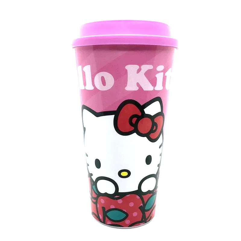 ¡Toma tus bebidas favoritas en un vaso con toda la onda! Este vaso de Hello Kitty™, te permitirá disfrutar de bebidas tanto frías como calientes. El mismo cuenta con tapa a presión, la cual también permite que puedas beber directamente del mismo.